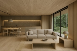 和モダン×ジャパンディ×ホテルライクの上質な暮らしの提案、木質天井と間接照明が導く「暮らしの質を整える設計」と暮らしの美学。