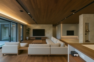和モダン×ジャパンディ×ホテルライクの上質な暮らしの提案、木質天井と間接照明が導く「暮らしの質を整える設計」と暮らしの美学。